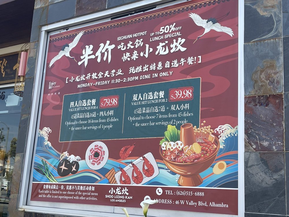 XiaoLongKan Hot Pot in Alhambra, CA is a trendy and casual Szechuan hot pot restaurant offering a wide range of options for both vegan and vegetarian diners. With unique interior decor reminiscent of an ancient Chinese palace, this restaurant provides an immersive dining experience. Customers rave about the fresh and diverse food offerings, praising the mushroom broth and high-quality ingredients. The attentive service ensures that diners receive top-notch care, with servers constantly refilling soup and checking on guests. While some reviewers mention slightly higher prices, the overall consensus is positive due to the generous portion sizes and flavorful broths. XiaoLongKan Hot Pot stands out for its traditional Chinese decorations, efficient online ordering system, and satisfying dining experience, making it a must-try spot for hot pot lovers in the area.